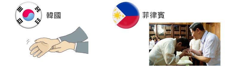 韓國 :一般伸出右手握手,左手會放在右手下方以示禮貌